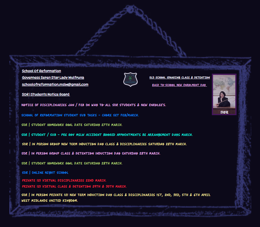 Sign School Enrolment Consent Forms, Fill Out My Health & Safety Forms Covering Your Current Known Hard limits, Kink Preferences, Fets & Med Background Prior To Attending SOR Classes & Detentions.